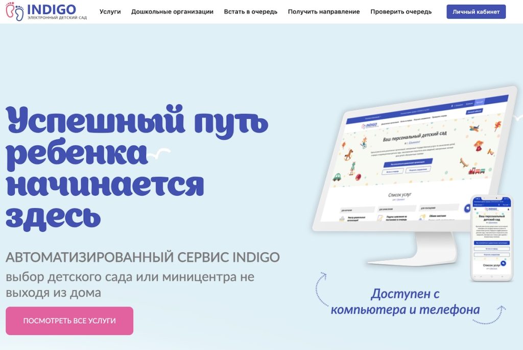 Indigo — это цифровая платформа, которая объединяет реестры всех детских садов города и позволяет родителям управлять процессом постановки в очередь и распределения мест в реальном времени. Система работает прозрачно: как только в садике освобождается место, оно мгновенно появляется в системе.